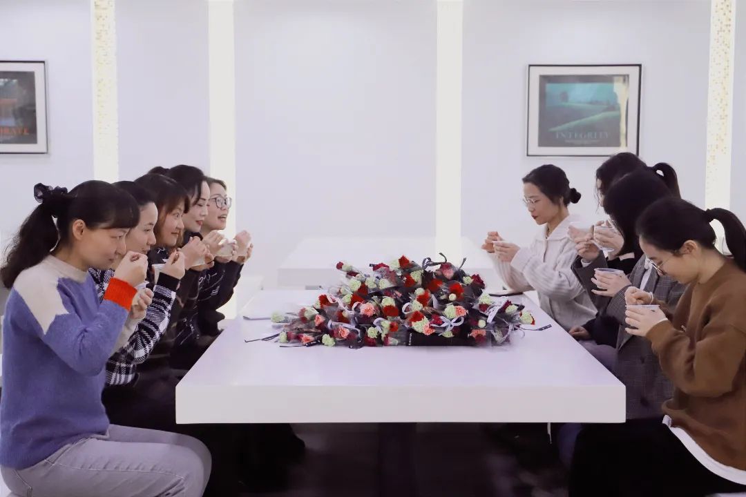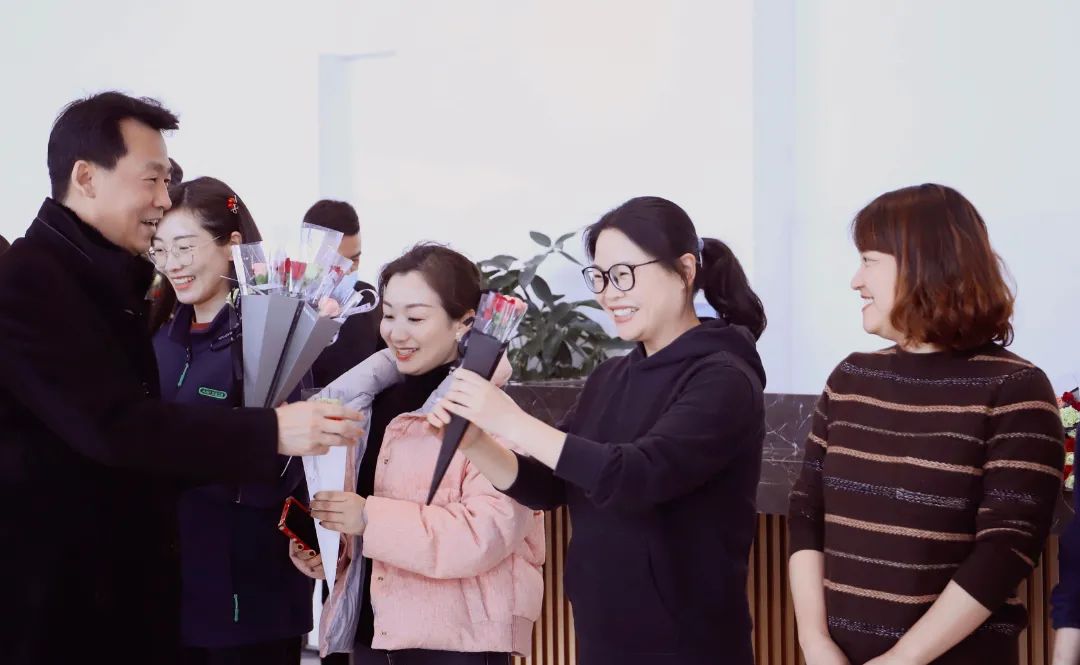 幸得識(shí)卿桃花面,從此阡陌多暖春。 三月春風(fēng)惹人醉,三月是充滿希望的季節(jié),溫暖、新生、花香綿綿。從三月里款款走來的女子,仿佛盛開的桃花,粉黛略施,卻不張揚(yáng),輕輕奏響世間最美的贊歌。 今日的鮮花,由秦經(jīng)理的男團(tuán)組合精心挑選并用心包裝,總經(jīng)理趙景陽先生、工會(huì)主席張軍先生為女神們傾情獻(xiàn)花,看女神們的欣喜笑容就知道有多滿意。