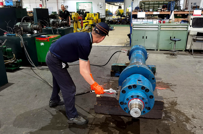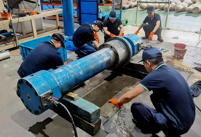 ▲ 魏庭華發(fā)現(xiàn)液壓缸漏油