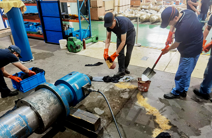 ▲ 對(duì)現(xiàn)場(chǎng)的泄漏物進(jìn)行清理