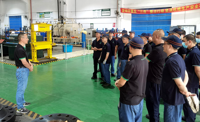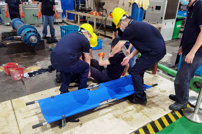 應(yīng)急救援預(yù)案的應(yīng)急演練是為了檢驗(yàn)、評(píng)價(jià)和保持公司生產(chǎn)安全事故應(yīng)急救援預(yù)案、環(huán)境突發(fā)事件應(yīng)急救援預(yù)案的應(yīng)急能力及有效性。1、可在事故真正發(fā)生前暴露預(yù)案和程序的缺陷;2、發(fā)現(xiàn)應(yīng)急資源的不足(人力和設(shè)備等);3、改善各應(yīng)急部門、機(jī)構(gòu)、人員之間的溝通與協(xié)調(diào);4、增強(qiáng)職工應(yīng)對(duì)突發(fā)事故救援的信心和救援意識(shí);5、提高應(yīng)急救援人員的熟練程度和技術(shù)水平,進(jìn)一步明確各自的崗位與職責(zé)。2022年8月31日15時(shí)10分,在江寧廠區(qū)液壓缸生產(chǎn)中心裝配組進(jìn)行。現(xiàn)場(chǎng)處置方案演練:針對(duì)公司突發(fā)環(huán)境事件應(yīng)急救援預(yù)案的部分應(yīng)急響應(yīng)功能,檢驗(yàn)、評(píng)價(jià)公司應(yīng)急組織的應(yīng)急能力。1、液壓油泄漏事件的應(yīng)急響應(yīng)和救援。2、發(fā)生環(huán)境突發(fā)事件時(shí),對(duì)現(xiàn)場(chǎng)環(huán)境的應(yīng)急處理。3、如發(fā)生人員傷亡,急性中毒等額外情況,對(duì)傷員的初步處理。