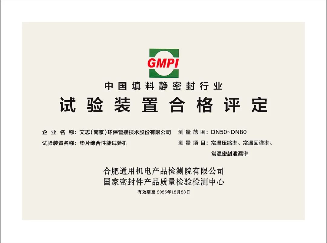 經(jīng)合肥通用機電產(chǎn)品檢測院及國家密封件產(chǎn)品質(zhì)量檢測中心對我司試驗裝置墊片綜合性能試驗機的檢測,特授予我司 “試驗裝置合格評定” 證書;??