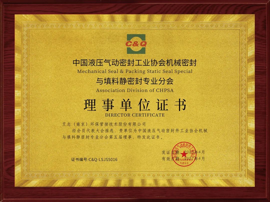 經(jīng)會員代表大會推選,我司被評為中國液壓氣動密封工業(yè)協(xié)會機械密封與填料靜密封專業(yè)分會的第五屆理事,并頒發(fā)了 “理事單位證書” 。??
