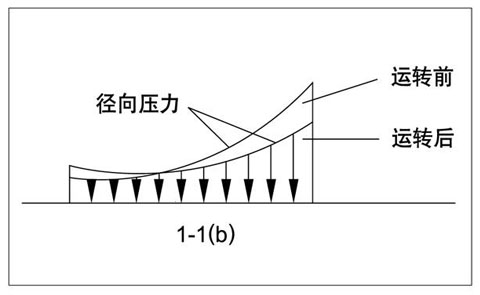 填料對(duì)軸的壓緊力通過(guò)擰緊壓蓋螺栓產(chǎn)生。由于填料是彈塑性體,當(dāng)受到軸向壓緊后,產(chǎn)生摩擦力致使壓緊力沿軸向逐漸減少,同時(shí)所產(chǎn)生的徑向壓緊力使填料緊貼于軸表面而阻止介質(zhì)外漏。徑向壓緊力的分布如圖1-1(b)所示,其由外端(壓蓋)向內(nèi)端,先是急劇遞減后趨平緩,介質(zhì)壓力的分布如圖1-1(c)所示,由內(nèi)端逐漸向外端遞減,當(dāng)外端介質(zhì)壓力為零時(shí),則泄漏很少,大于零時(shí)泄漏較大。
